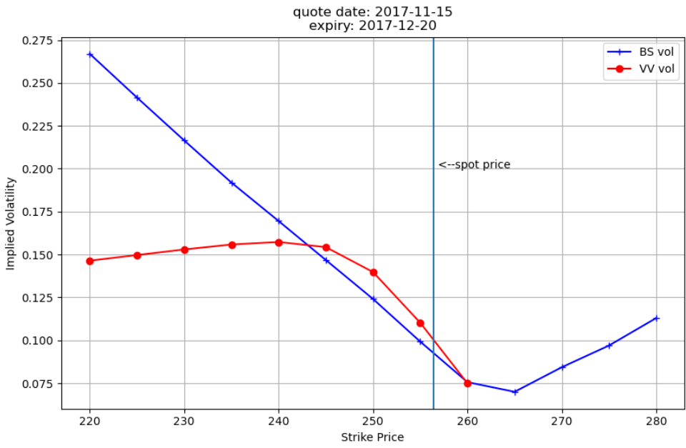 Adjacent are two images that show some options research, and how the Volga-Vanna correction (used a lot in FX options) can be used to get a more realistic value for volatility (vs the Black Scholes vol) – the application is towards option vol arbitrage, mainly on time to expiry, buying when vol is low and selling when it is high.